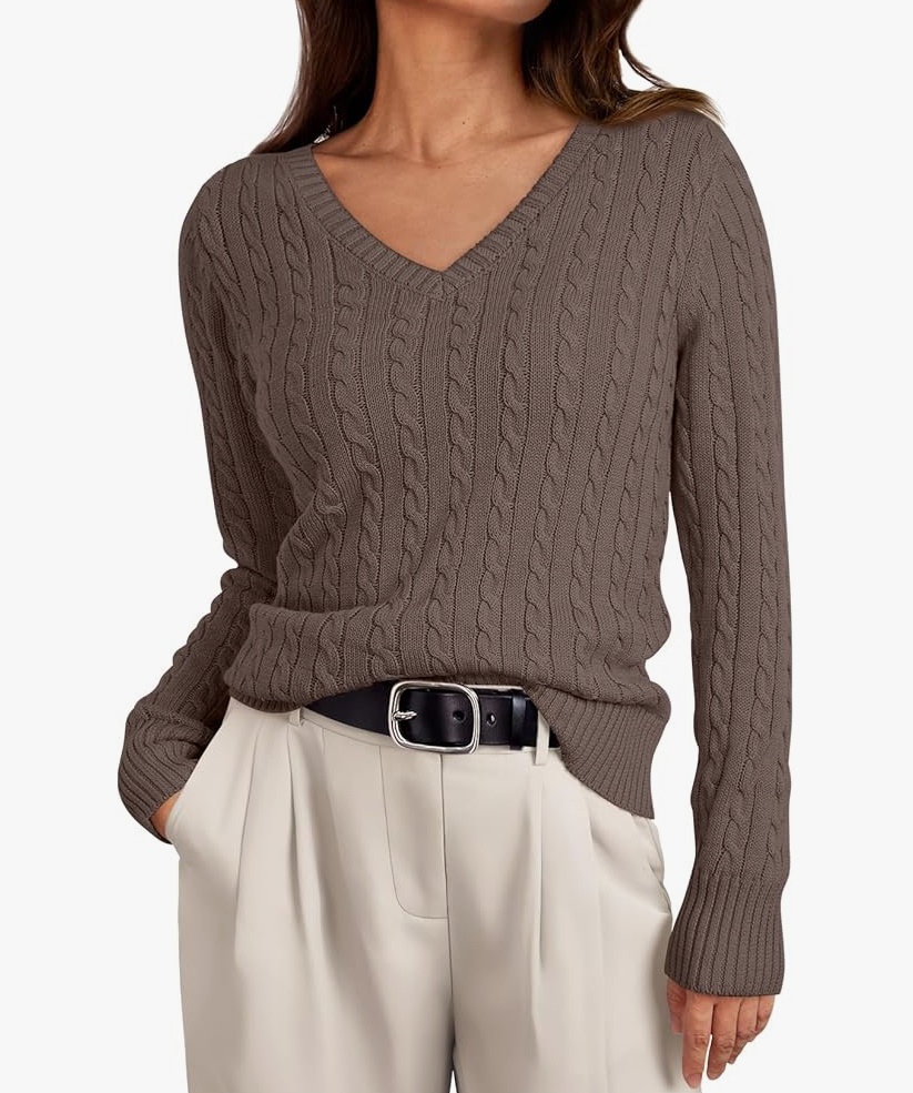 Lillusory Cable Knit V Neck Sweater