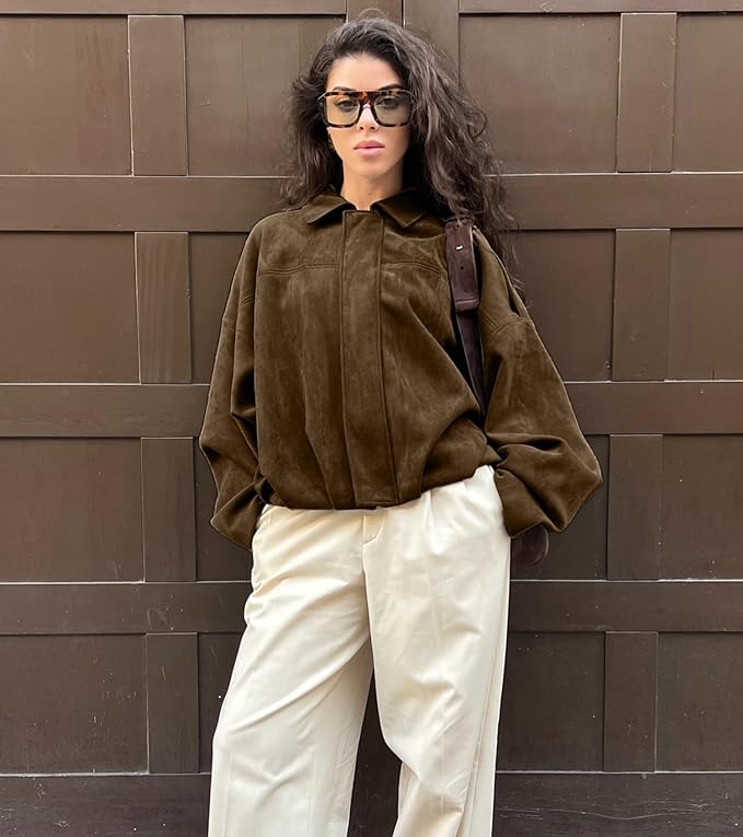 - Amazon Pick: WOWULOVELY Women’s Faux Suede Bomber Jacket